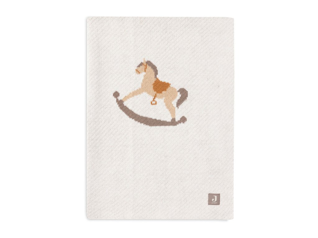Mäkká pletená deka s krásnym vzorom hojdacích koníkov je ideálna na prikrytie bábätka v kočíku, kolíske či košíku.