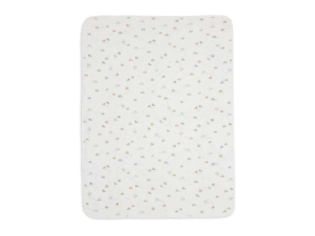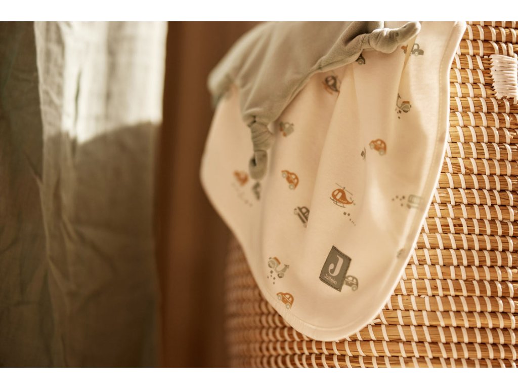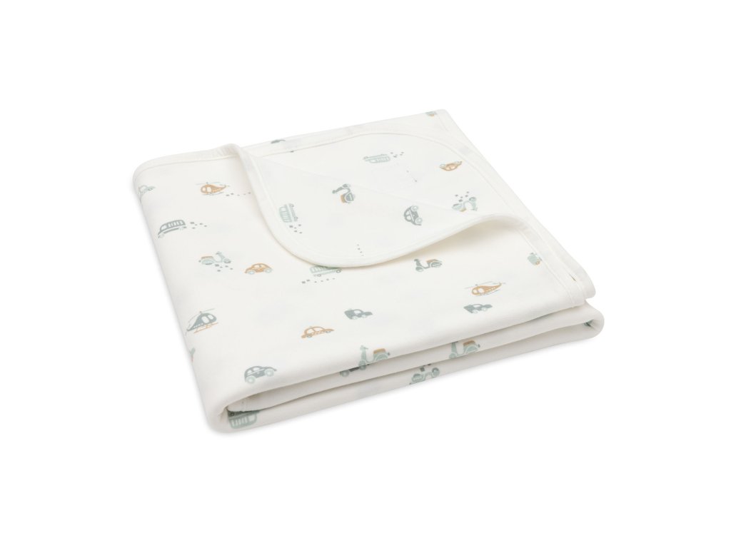 Mäkká bavlnená deka s krásnou potlačou dopravných prostriedkov je ideálna na prikrytie bábätka v kočíku, kolíske či košíku.
