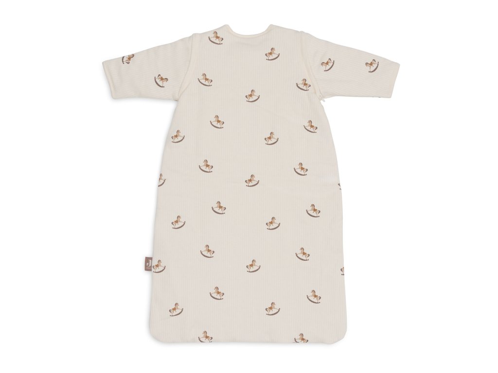 Praktický spací vak s oddeliteľnými rukávmi ponúka variabilitu pri použití podľa počasia a teploty v miestnosti. Vďaka jemnej výplni je vhodný na použitie namiesto perinky. Spací vak zaistí, že sa dieťa v noci neodkope a bude tak po celú dobu spánku v pohodlí a teple bez rizika prechladnutia. Kryté zipsy v prieramkoch umožňujú ľahké oddelenie rukávov, pokiaľ chcete spací vak používať v teplejšom prostredí bez rukávov. Zips na prednej strane umožňuje ľahké vloženie dieťaťa do spacieho vaku a prebaľovanie počas spania.