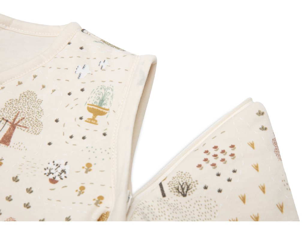 Praktický spací vak s oddeliteľnými rukávmi ponúka variabilitu pri použití podľa počasia a teploty v miestnosti. Vďaka jemnej výplni je vhodný na použitie namiesto perinky. Spací vak zaistí, že sa dieťa v noci neodkope a bude tak po celú dobu spánku v pohodlí a teple bez rizika prechladnutia. Kryté zipsy v prieramkoch umožňujú ľahké oddelenie rukávov, pokiaľ chcete spací vak používať v teplejšom prostredí bez rukávov. Zips na prednej strane umožňuje ľahké vloženie dieťaťa do spacieho vaku a prebaľovanie počas spania.