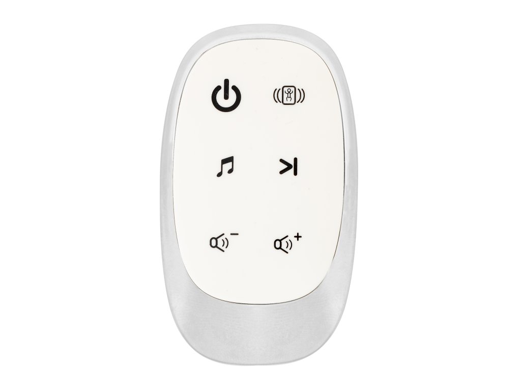 Súčasťou balenia je AC adaptér, batérie 4x C nie sú súčasťou. Diaľkový ovládač obsahuje vymeniteľnú gombíkovú batériu CR 2025 3V.