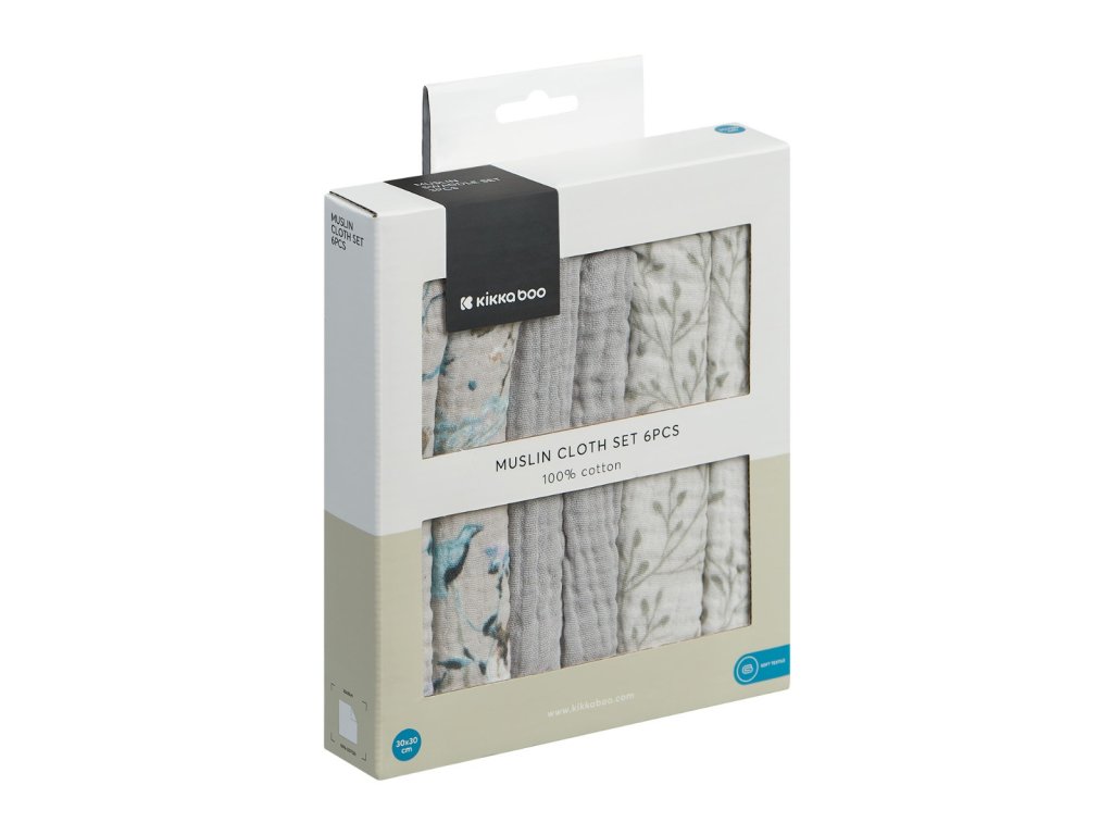 KikkabOO Plienky mušelínové 30x30 cm 6ks Dreamy Fields Grey