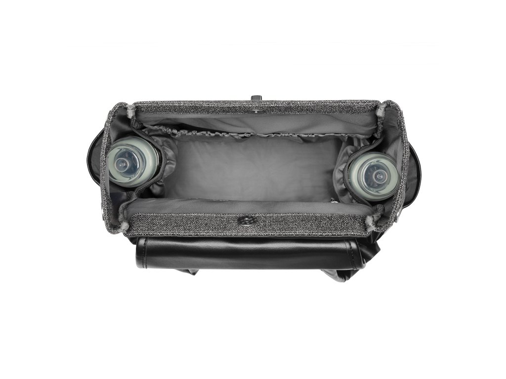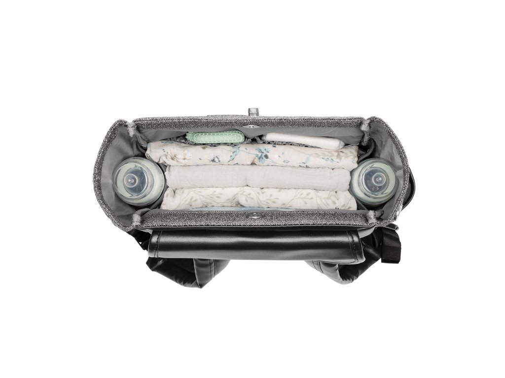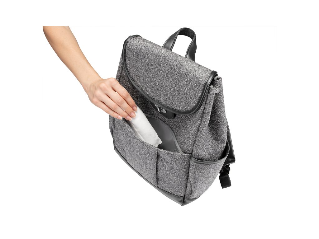 Vnútri batohu nájdete množstvo vreciek a priehradok aj vodeodolné vrecko na uloženie vlhkých predmetov. Široký spôsob otvárania batohu uľahčuje orientáciu v uloženom obsahu. Na vonkajšej strane nájdete vrecká s uzatváraním na zips aj vrecko na uloženie fľaše. Termoizolačné vrecká na fľaše pomáhajú udržať nápoje či mlieko dlhšiu dobu v optimálnej teplote. Súčasťou plecniaka je aj prebaľovacia podložka.