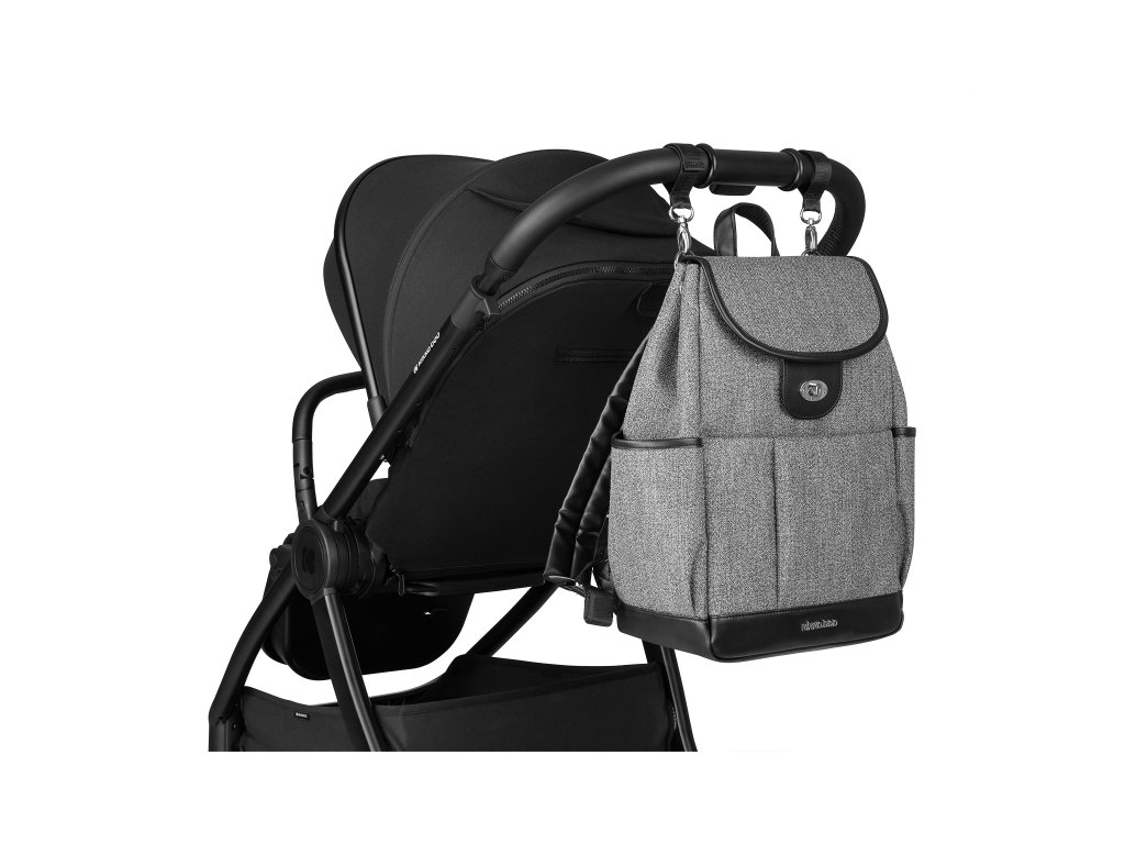 Prebaľovací batoh z luxusného štruktúrovaného materiálu s detailmi z umelej kože umožňuje prehľadné uloženie všetkého potrebného na prechádzky a výlety s vašim dieťaťom. Klipy umožňujú zavesenie na madlá kočíka. Magnetické uzatváranie s otočným kovovým uzáverom umožňujú ľahké otvorenie batohu jednou rukou.