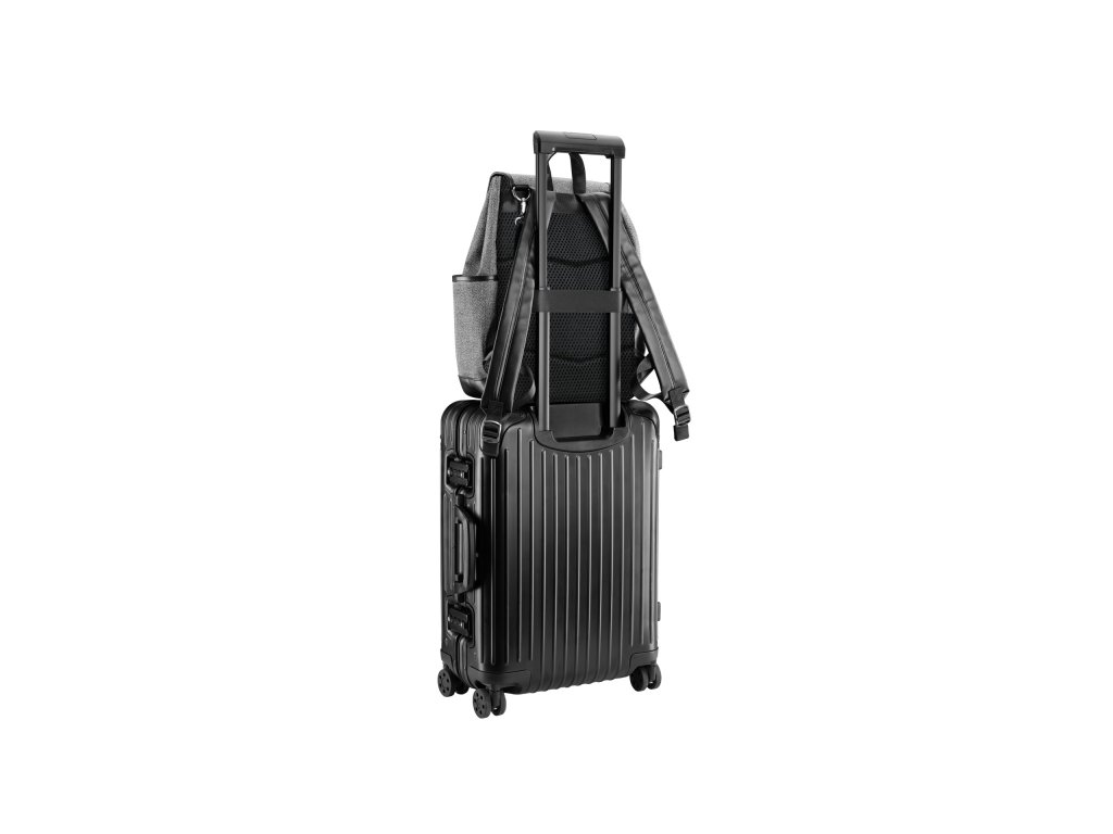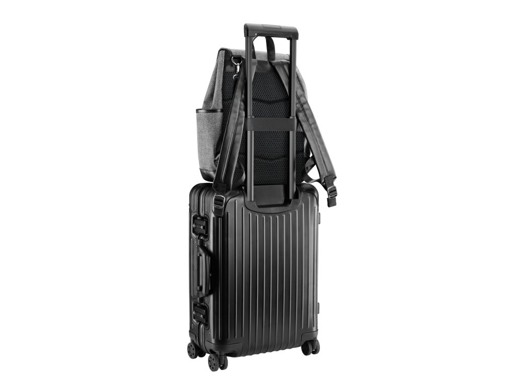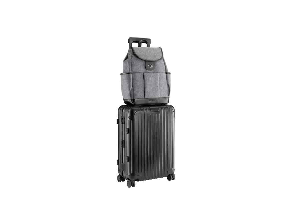 Batoh je možné zavesiť na kočík, pripevniť k rukoväti kufra, nosiť na chrbte aj v ruke.