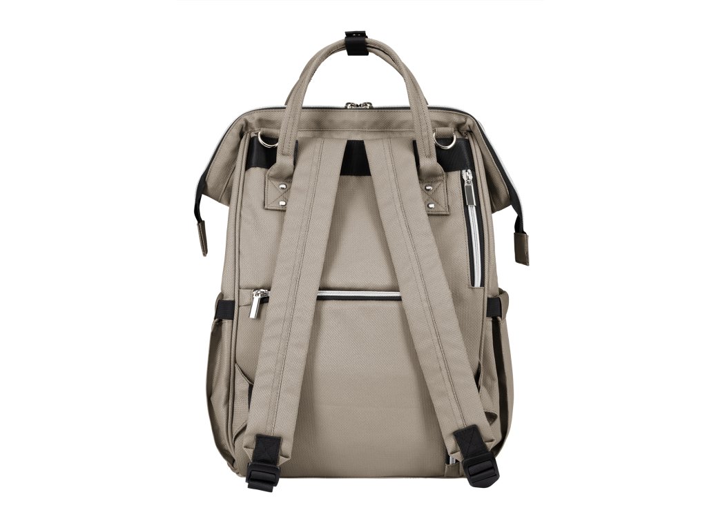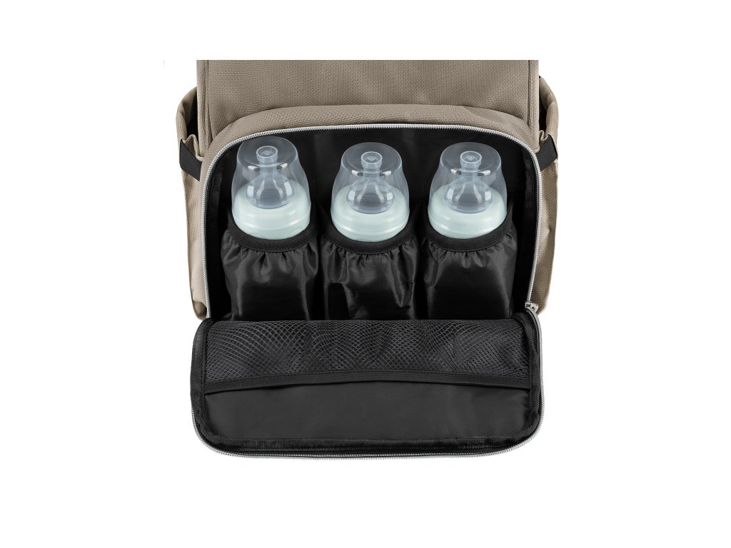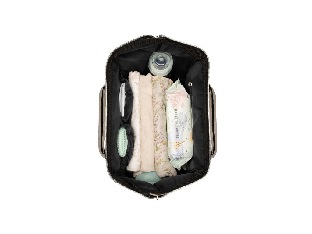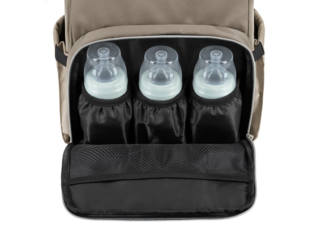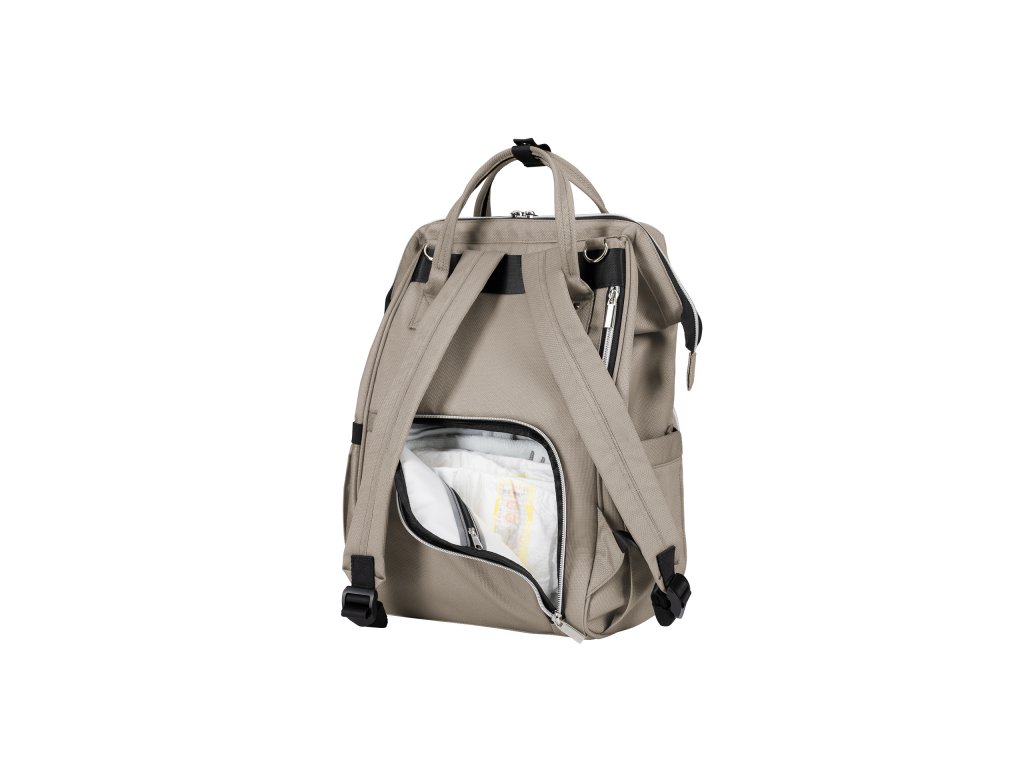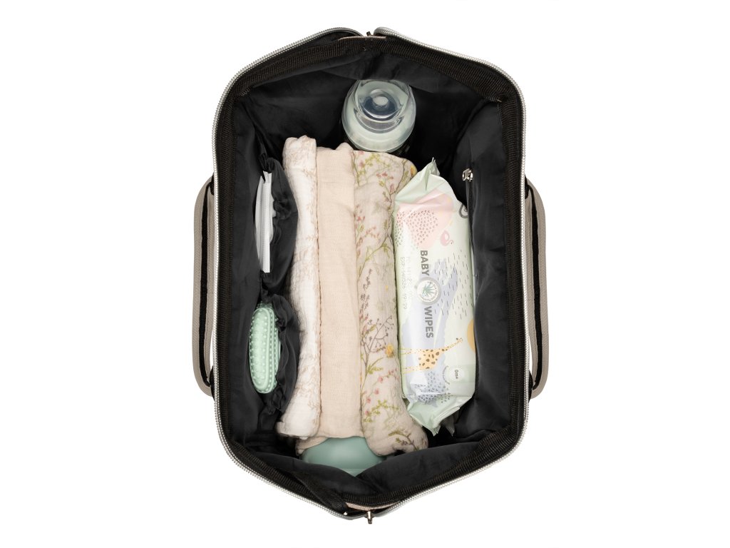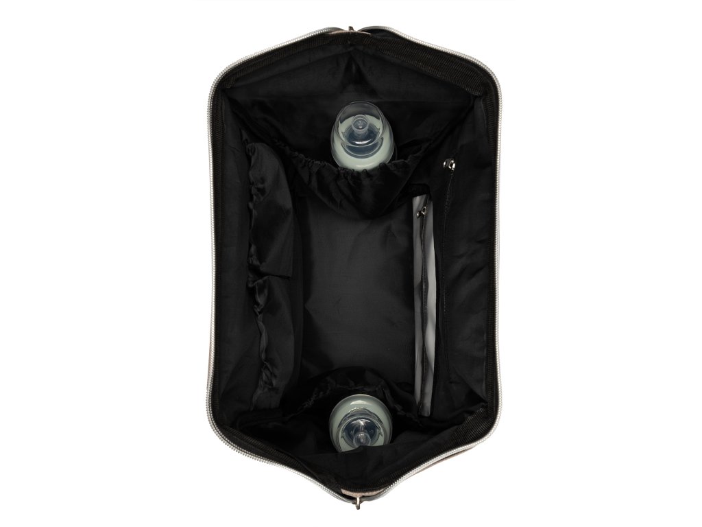 Vnútri batohu nájdete množstvo vreciek a priehradok aj vodeodolné vrecko na uloženie vlhkých predmetov. Široký spôsob otvárania batohu uľahčuje orientáciu v uloženom obsahu. Na vonkajšej strane nájdete vrecká s uzatváraním na zips aj vrecko na uloženie fľaše. Termoizolačné vrecká na fľaše pomáhajú udržať nápoje či mlieko dlhšiu dobu v optimálnej teplote. Súčasťou plecniaka je aj prebaľovacia podložka.