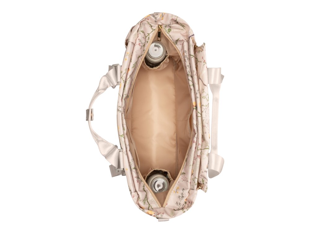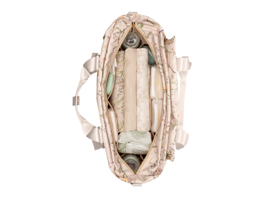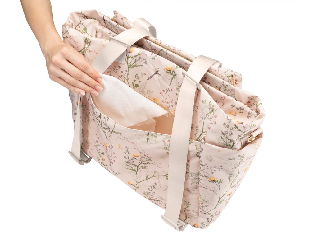 Vnútri tašky nájdete množstvo vreciek a priehradok aj vodeodolné vrecko na uloženie vlhkých predmetov. Široký spôsob otvárania tašky uľahčuje orientáciu v uloženom obsahu. Na vonkajšej strane nájdete vrecká na uloženie fľaše. Termoizolačné vrecká na fľaše pomáhajú udržať nápoje či mlieko dlhšiu dobu v optimálnej teplote. Predné vyklápacie vrecko obsahuje integrovanú prebaľovaciu podložku a po otvorení umožňuje aj prístup do vnútorného priestoru tašky.