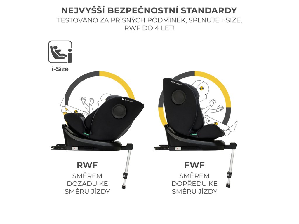 I-360 vám umožňuje prepravovať deti chrbtom voči smeru jazdy (RWF) až do veku 4 rokov! Preprava RWF je pre deti až 5x bezpečnejšia v prípade čelného nárazu. A keď nadíde čas na prepravu čelom dopredu, môžete sedačku jednoducho otočiť bez toho, aby ste ju vybrali z auta. I-360 i-Size ochráni vaše dieťa počas celej cesty v autosedačke vďaka 12-stupňovému nastaveniu opierky hlavy a 5-stupňovému nastaveniu sklonu.