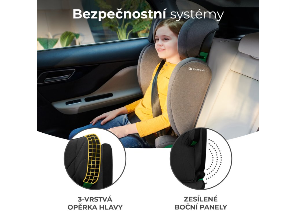 - Systém bočnej ochrany zabezpečuje hlavu a ramená dieťaťa