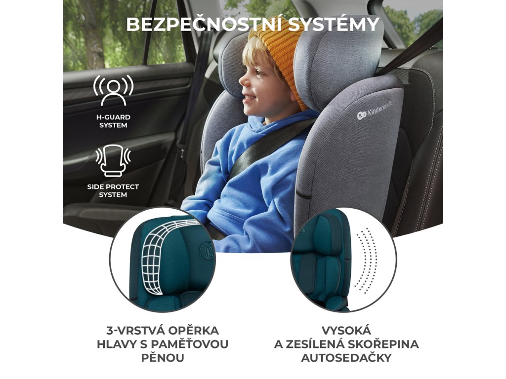 Vysoké, zosilnené bočné chrániče (SPS) absorbujú energiu vznikajúcu pri bočnom náraze a zadržujú ju mimo dosahu dieťaťa. V prípade nehody chránia ramená a boky dieťaťa. Za ochranu hlavy je zodpovednýi H-GUARD SYSTEM - 3-vrstvová opierka hlavy s pamäťovou penou, ktorá pohlcuje vytvorenú energiu a vďaka vrstvám ju rozptyľuje a zabraňuje, aby sa dostala k citlivým častiam tela dieťaťa.
