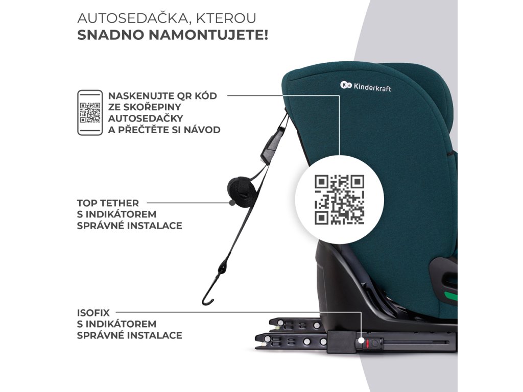 Vďaka ISOFIX sedačku do auta namontujte za pár okamihov. Pri preprave mladších detí je potrebné ju dodatočne pripevniť pomocou popruhu TOP TETHER. Oba systémy majú indikátory, ktoré zaručujú správnu montáž. Väčšie deti môžete voliteľne prepravovať v aute bez ISOFIX konektorov.