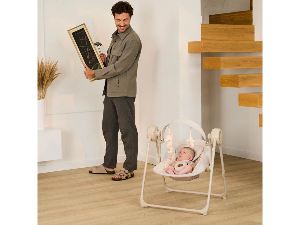 Hojdačka s viacerými funkciami, ktoré sa prispôsobí potrebám vášho dieťaťa. SWINGEE ponúka pohodlie, bezpečnosť a praktickosť v jednom ľahkom a skladacom riešení. Využijete ho doma aj na cestách, pričom ponúka niekoľko možností napájania – zo siete, powerbanky alebo batérií. S 5 úrovňami nastavenia hojdania a časovačom môžete jednoducho prispôsobiť pohyb podľa nálady a potrieb dieťaťa. K dispozícii máte aj 8 upokojujúcich melódií vrátane zvukov prírody, ktoré pomôžu vášmu bábätku lepšie sa uvoľniť. Ľahká konštrukcia váži len 3,7 kg a vďaka skladaciemu systému je SWINGEE praktický na uskladnenie aj prenášanie. Pre maximálne pohodlie je sedadlo nastaviteľné do dvoch polôh – na ležanie a pololežanie. Bezpečnosť zabezpečujú 5-bodové pásy s mäkkými návlekmi a ergonomický nastaviteľný vankúšik. Dve mäkké hračky na hrazdičke podporujú rozvoj motoriky a stimulujú detské zmysly.