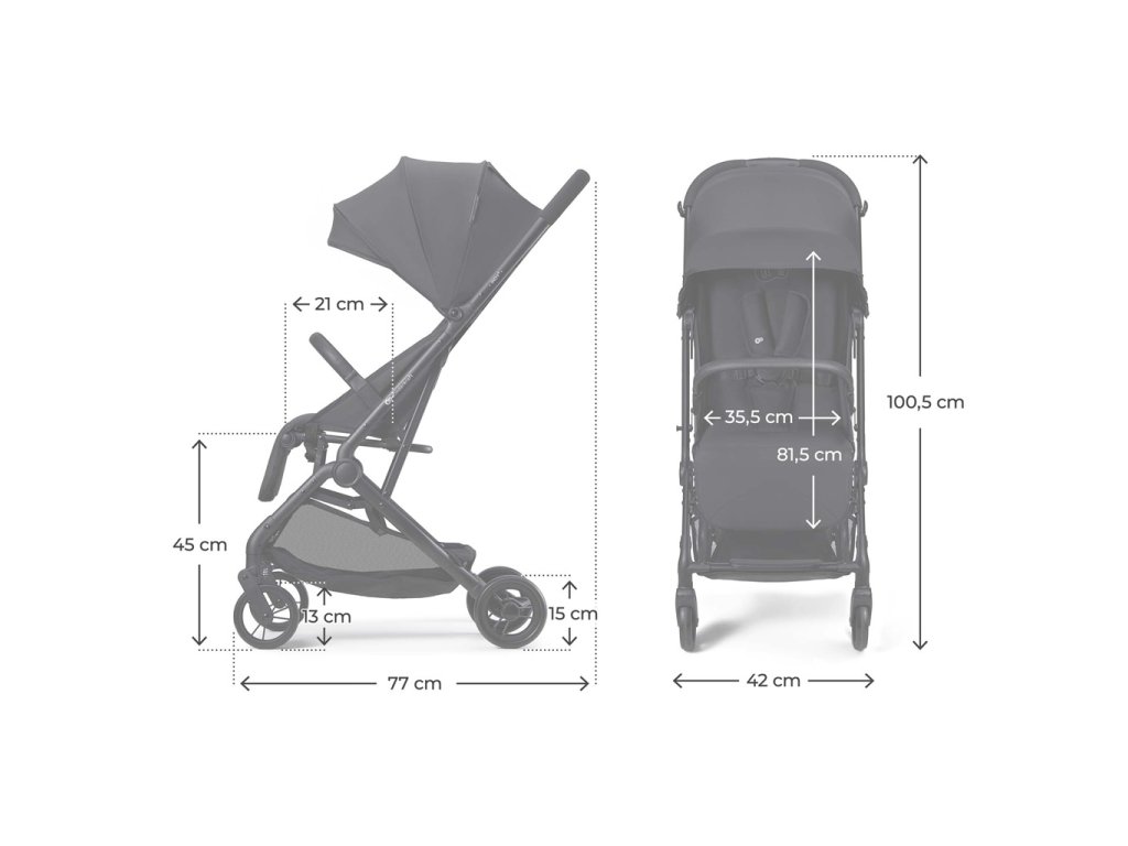 - Jednoduché skladanie jednou rukou – kompaktné rozmery po zložení: 59 × 43,5 × 21,5 cm
