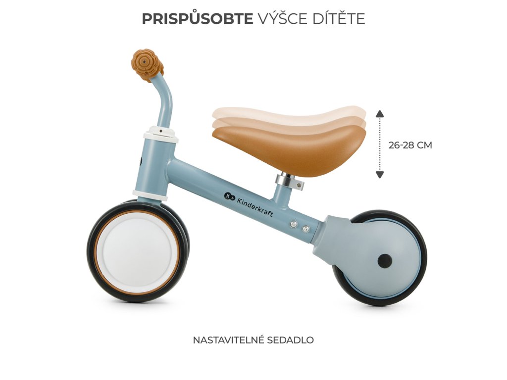 - Mini bicykel CUTIE sa prispôsobuje potrebám dieťaťa. To umožňuje nastavenie sedadla v rozmedzí 26-28 cm.