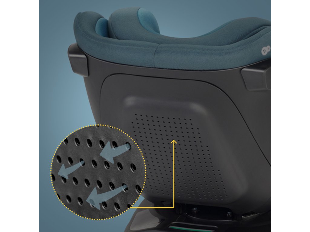 Vďaka antirotačnému rámu je konštrukcia stabilnejšia a bezpečnejšia. V prípade kolízie zabraňuje nakloneniu sedačky v polohe RWF smerom k operadlu sedadla. Týmto spôsobom chráni dieťa pred nárazom do opierky alebo opierky hlavy.