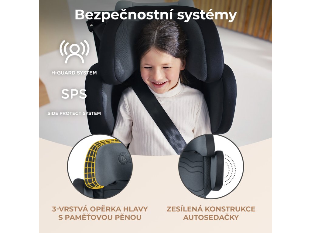 - Rozšírená bočná ochrana, sedadlo možno výškovo a šírkovo nastaviť