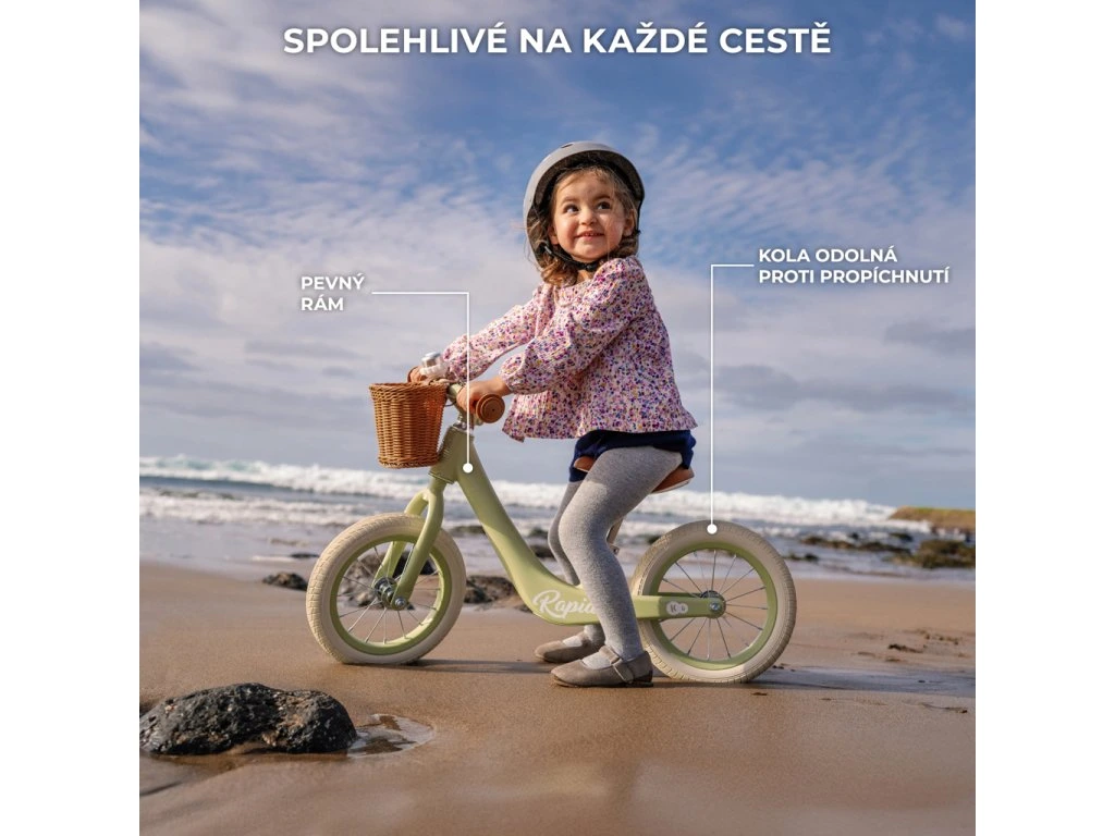 Odrážadlo RAPID má veľké, gumové kolesá s ložiskami. Zabezpečujú dobrú amortizáciu rovnako počas jazdy na chodníku, ako aj na nerovných, lesných cestičkách.