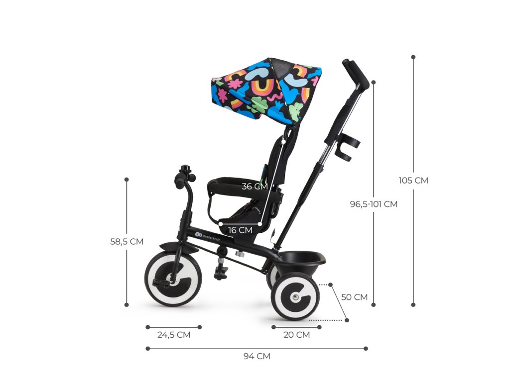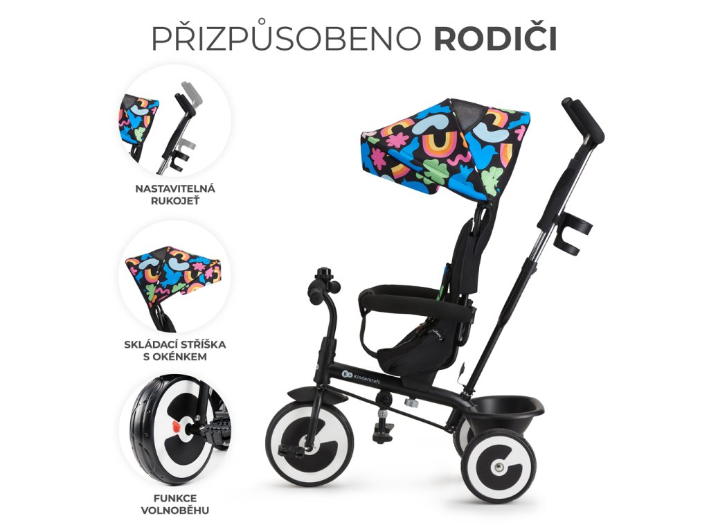 Aby sa trojkolka ľahšie ovládala rodičom a opatrovateľom detí, má ASTON nastaviteľnú rodičovskú rukoväť. Jej výšku si môžete za pár okamihov nastaviť podľa svojej výšky bez použitia akéhokoľvek náradia.