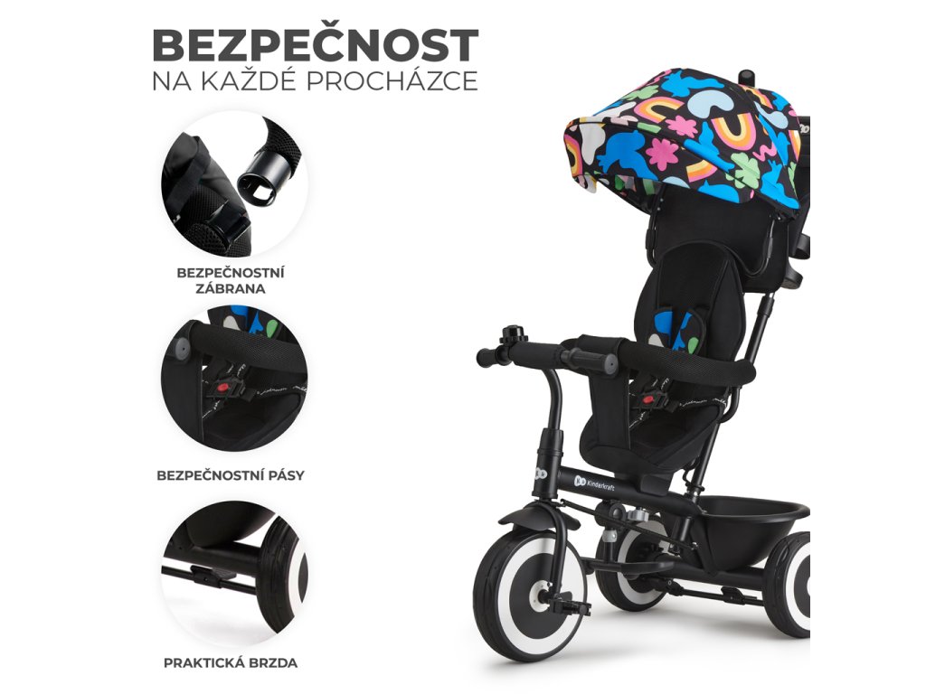 Trojkolka ASTON má veľkú sklápaciu kapotu. Chráni vaše batoľa pred mrholením alebo vetrom, ale poskytuje aj tieň na prechádzky na plnom slnku. V prípade potreby ju možno ľahko rozložiť, keď dieťa vyrastie.