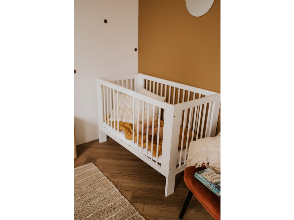 Postieľka má rozmery 120 x 60 cm a je kompatibilná so štandardnými detskými matracmi – matrac nie je súčasťou balenia, ale na našom webe nájdete širokú ponuku rôznych matracov. Nastavenie výšky matraca vám umožní prispôsobiť postieľku potrebám rastúceho dieťaťa a zaistiť tak pohodlie a bezpečnosť. Výšku matraca možno nastaviť do 3 rôznych výšok a 3 priečky postieľky sú odnímateľné.