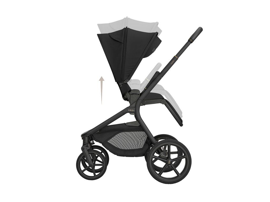 Športové sedenie je možné nasadiť po aj proti smeru jazdy a vďaka tlačidlám s pamäťou ho uvoľníte z podvozku pohodlne jednou rukou. Výšku sedenia môžete nastaviť do dvoch polôh pre prispôsobenie kočíka podľa výšky rodiča. Odnímateľné madlo pred dieťaťom je otočné o 360 ° pre ľahkú manipuláciu s dieťaťom a potiahnuté príjemnou ekokožou.