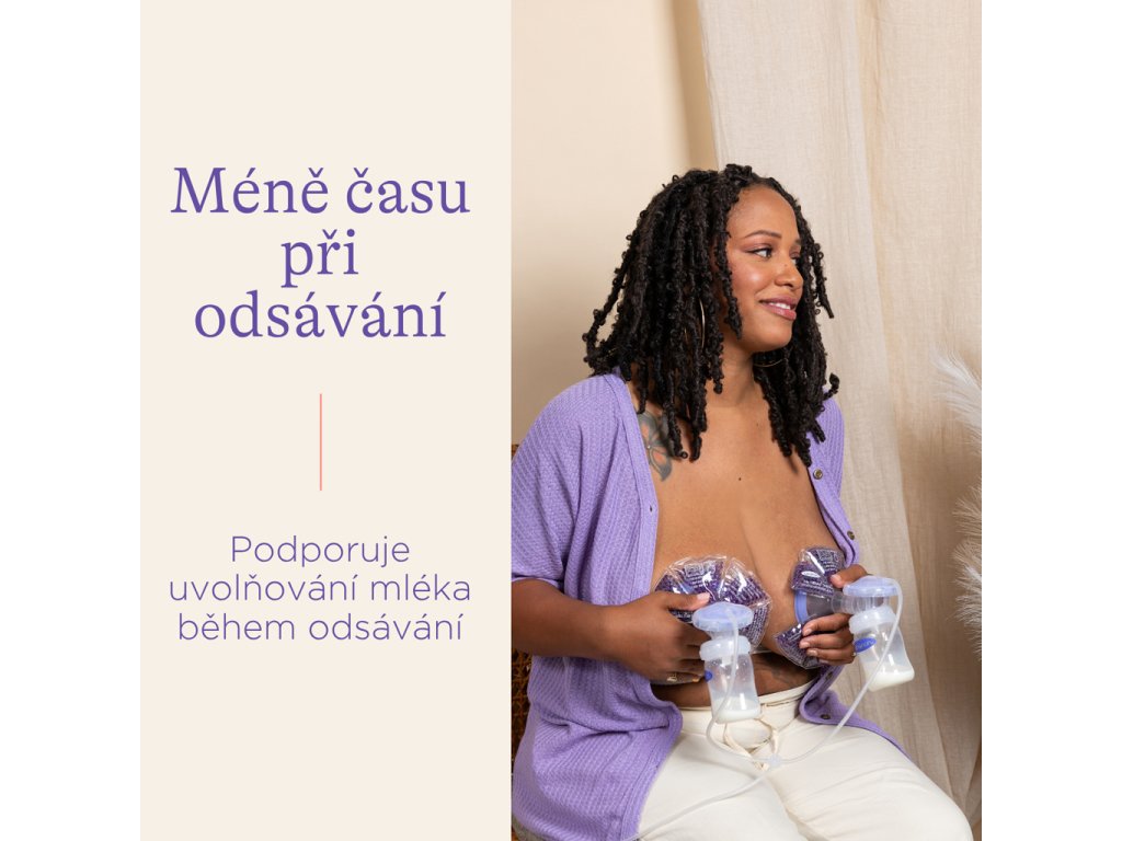 V kombinácii s odsávačkou mlieka prináša uvoľnenie mliekovodov čím urýchľuje a uľahčuje spustenie mlieka. Pri použití v kombinácii s odsávačkou mlieka pripnite obklad okolo košíku odsávačky a upevnite ho klipom.