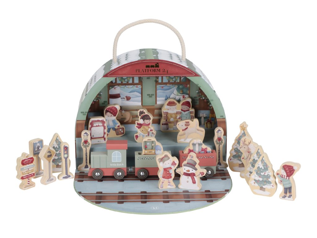 Adventný kalendár Little Dutch v podobe vianočnej stanice premení čakanie na Vianoce na radostné dobrodružstvo plné prekvapení a fantázie.