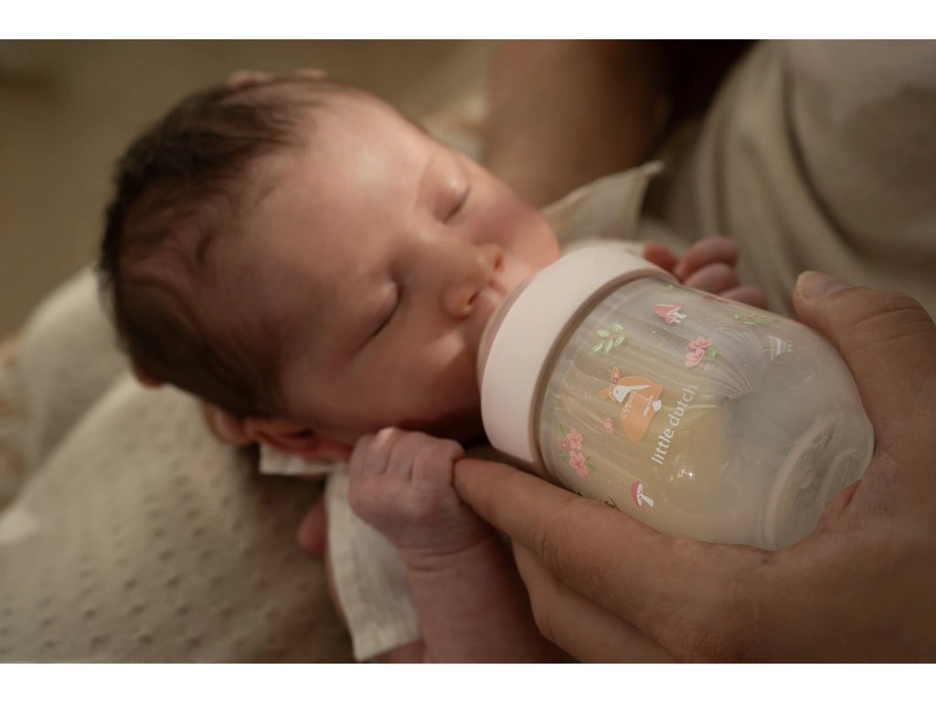 Dojčenská fľaša Little Dutch je ideálna na kŕmenie vášho bábätka od narodenia doma aj na cestách. Vďaka ergonomickému tvaru sa fľaštička pohodlne drží.