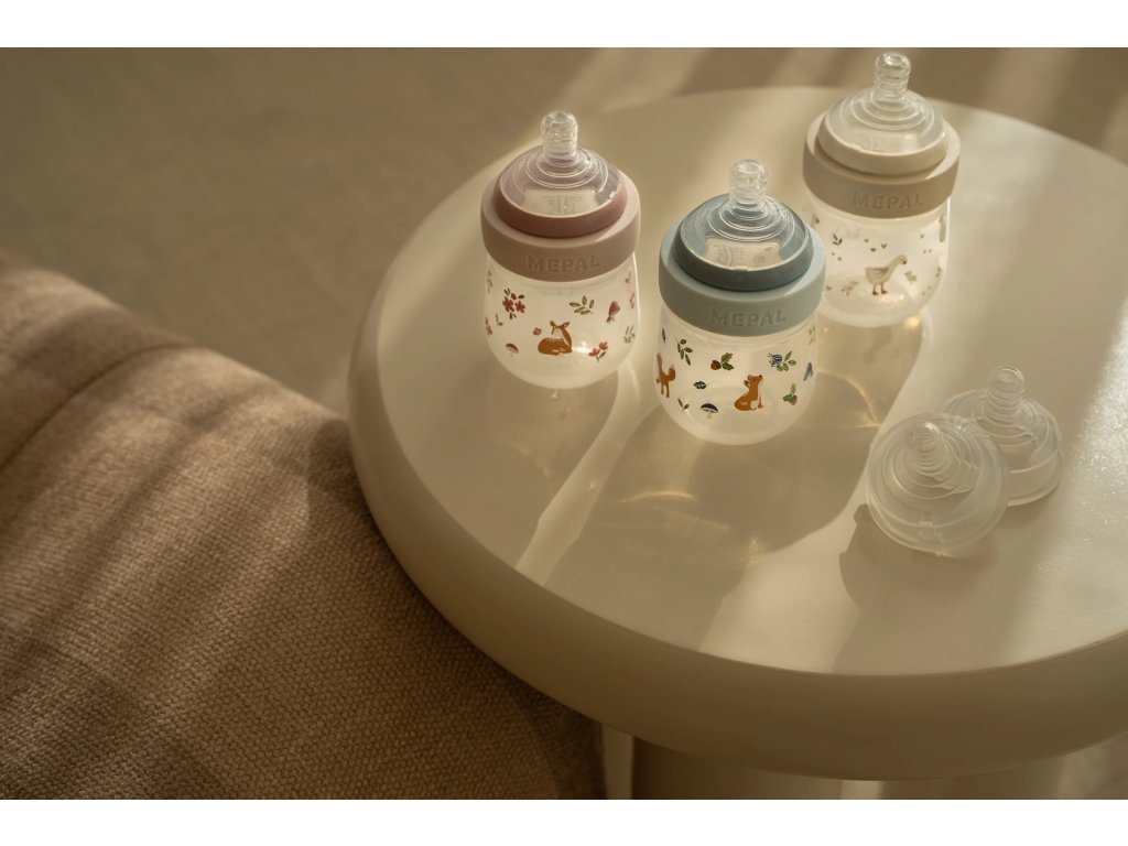 Sada dojčenských fliaš Little Dutch s krásnou potlačou a cumlíkom s antikolikovým ventilom obsahuje dve fľaše (165 ml a 240 ml) so cumlíkom s pomalým prietokom, vhodné pre deti od narodenia, a dva cumlíky so stredným prietokom, vhodné pre deti od 3 mesiacov.