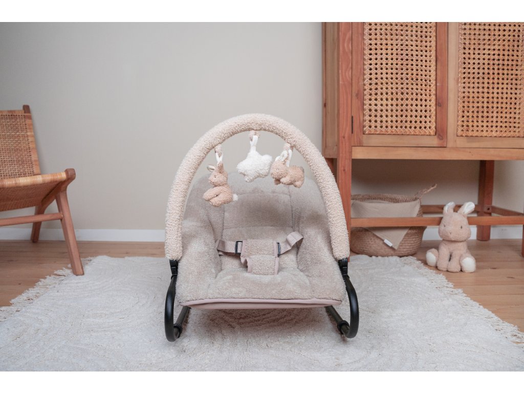 Hojdacie lehátko Little Dutch s hrazdou poskytne vášmu dieťa pohodlné miesto na oddych aj hranie. Pozornosť dieťaťa upútajú tri zavesené plyšové hračky v podobe zajačika a obláčika