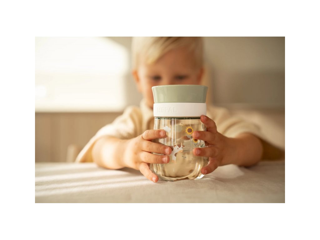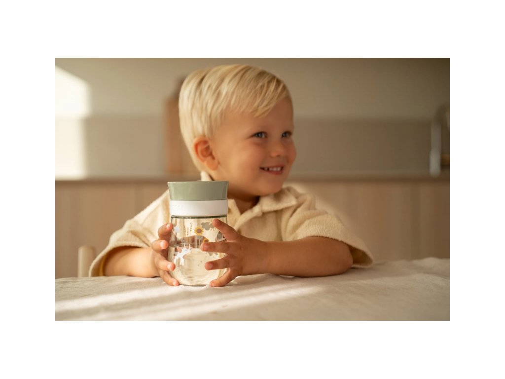 Trénovací hrnček je ideálny pre deti, ktoré sa učia piť z klasického hrnčeka. Silikónové viečko so systémom 360° umožňuje piť z ktoréhokoľvek miesta po obvode hrnčeka bez rizika rozliatia. Tekutina tečie z hrnčeka po naklonení k ústam dieťaťa kontrolovaným spôsobom, takže dieťa na seba pri pití obsah hnku nevyleje. Keď piť prestane, hrnček sa vďaka špeciálnej membráne automaticky uzavrie.