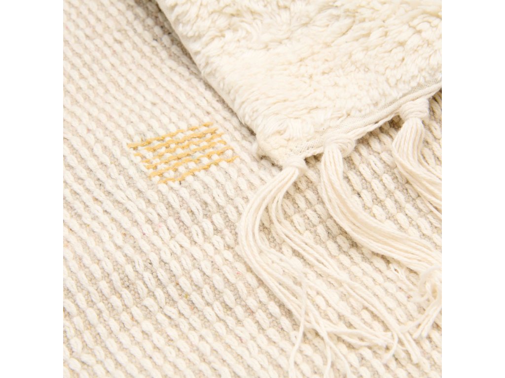 Koberec je vyrobený zo 100% organickej bavlny s vysokou gramážou a jeho protišmyková latexová vrstva zaisťuje bezpečné používanie. Koberček je možné ľahko vyprať v práčke aj usušiť v sušičke, čo uľahčuje jeho údržbu.