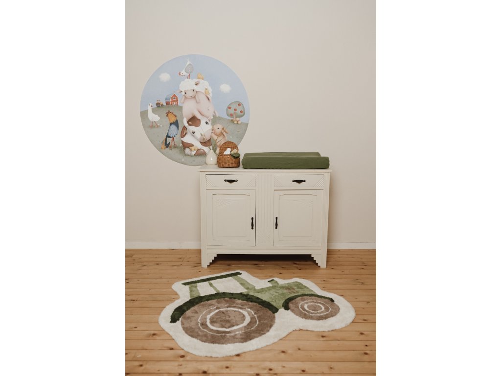 Vytvorte v detskej izbe útulnú atmosféru s koberčekom od značky Little Dutch! Koberček v tvare traktora má jemný béžový podklad a motív zeleno-hnedého traktora. Jeho hravý dizajn vnesie do miestnosti príjemnú a útulnú náladu a vášmu dieťaťu sa na ňom bude krásne sedieť a hrať sa.