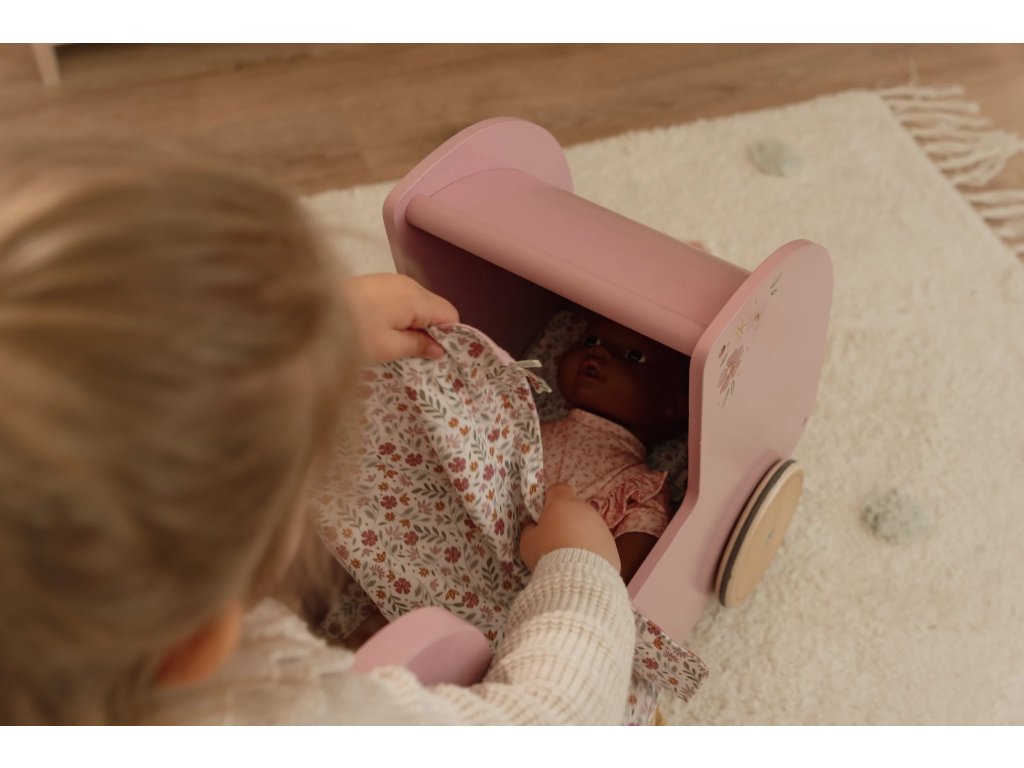 Little Dutch Kočík pre bábiky drevený s perinkou Pink