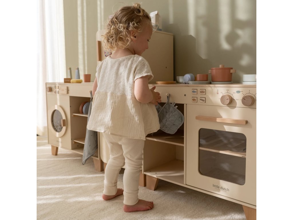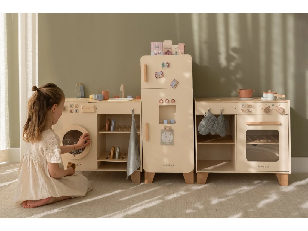 Vďaka možnosti kombinácie s chladničkou alebo práčkou z kolekcie drevených hračiek Little Dutch je možné vytvoriť plne vybavenú hernú kuchyňu. Tú potom môžete doplniť ďalšími drevenými hračkami Little Dutch, napr. kávovarom, sendvičovačom, kuchynskou váhou, krájacím ovocím, krájacou zeleninou, čajovým servisom a pod.