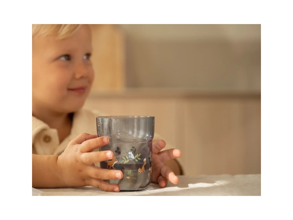 Téglik z priehľadného, extrémne odolného plastu s krásnou potlačou je ideálny pre deti, ktoré sa učia piť z pohára.