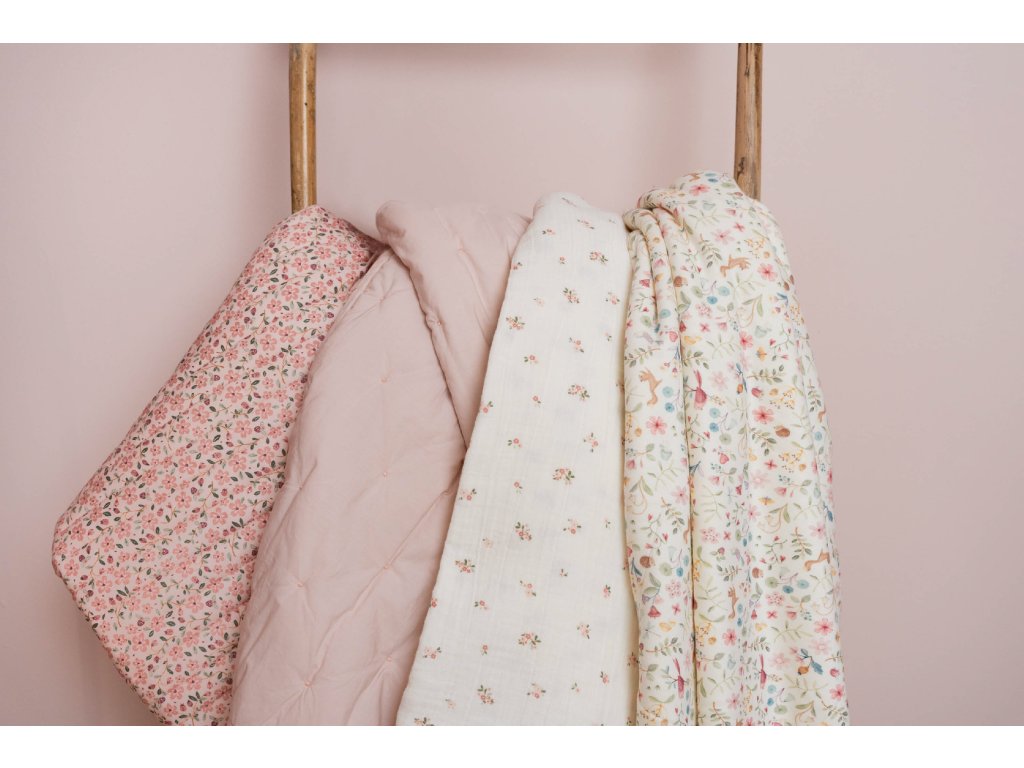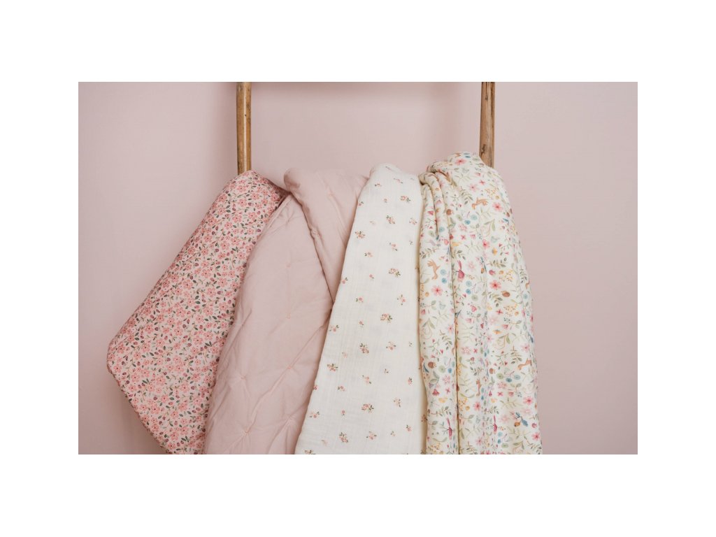 Prikrývka s jemnou kvetinovou potlačou je súčasťou dizajnovej kolekcie textilu, hračiek a doplnkov Little Dutch Fairy Garden, inšpirovanej životom na záhrade.