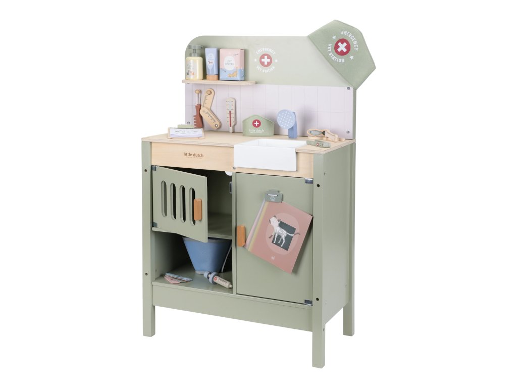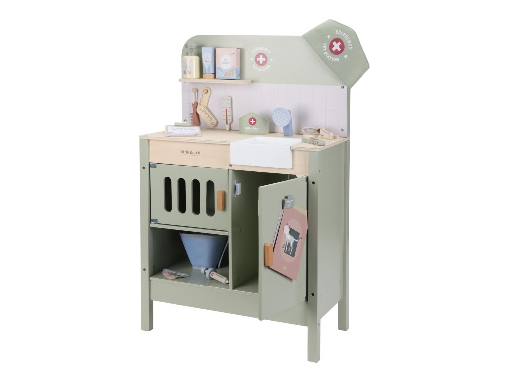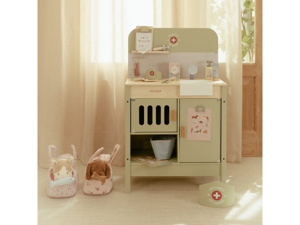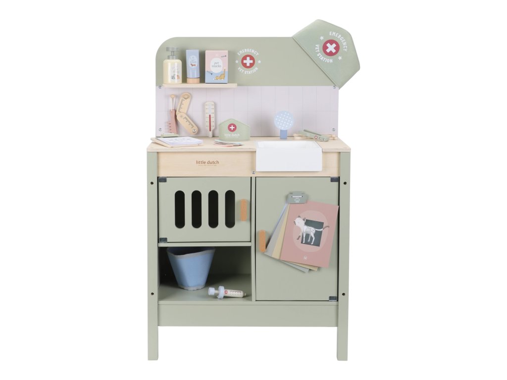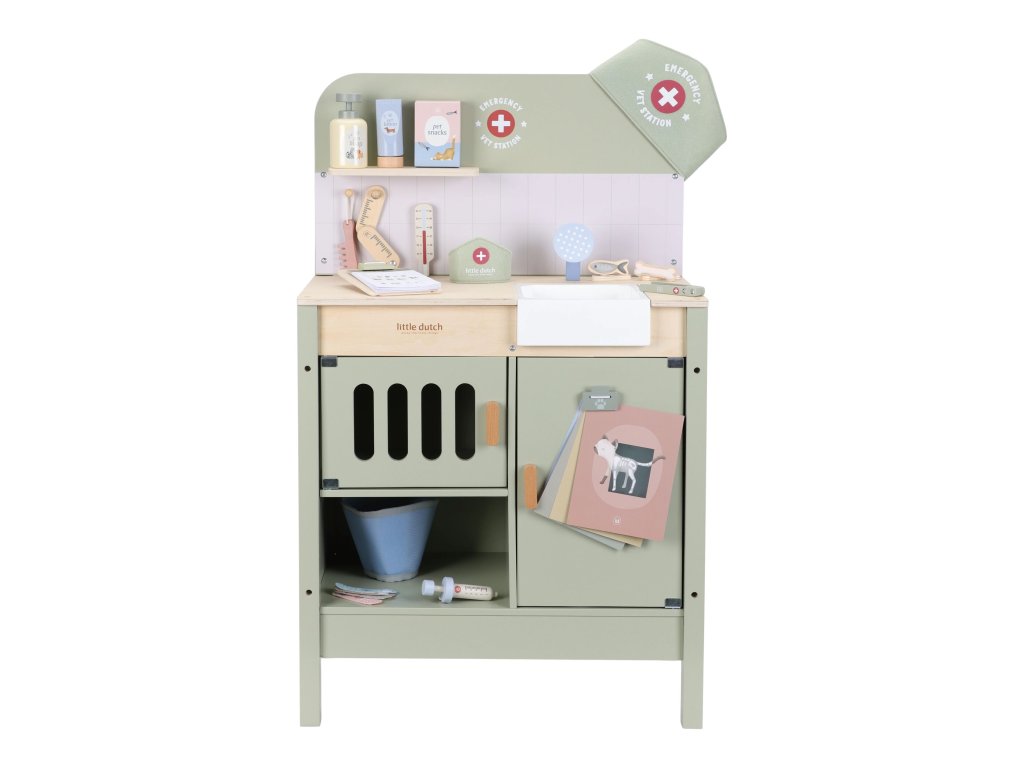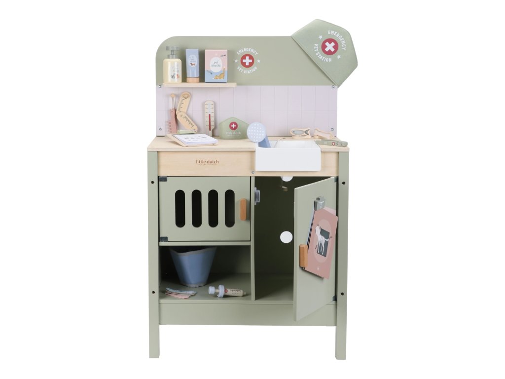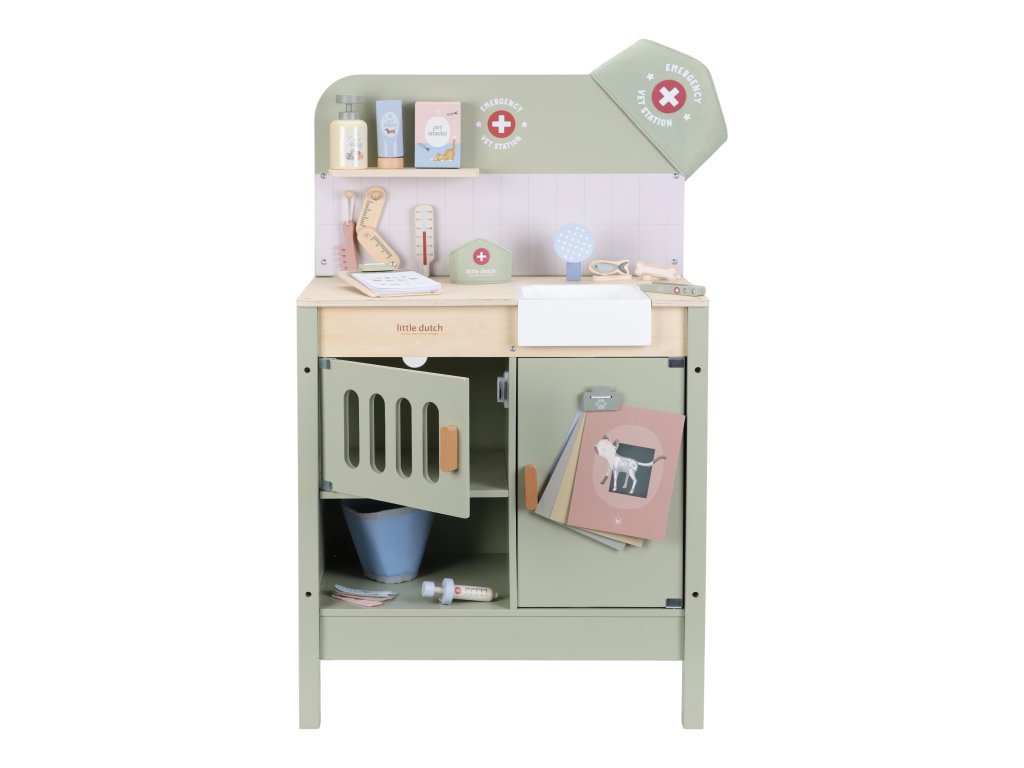 Drevená veterinárna ordinácia Little Dutch je skvelým darčekom pre deti, ktoré milujú zvieratká a starostlivosť o ne. Vďaka realistickým doplnkom sa malí ošetrovatelia ľahko ponoria do sveta starostlivosti o chorých miláčikov. Pripravte sa na množstvo príbehov zo života plyšových zvieratiek a nekonečné hodiny zábavného hrania!