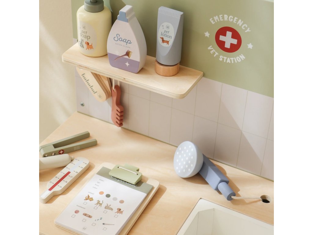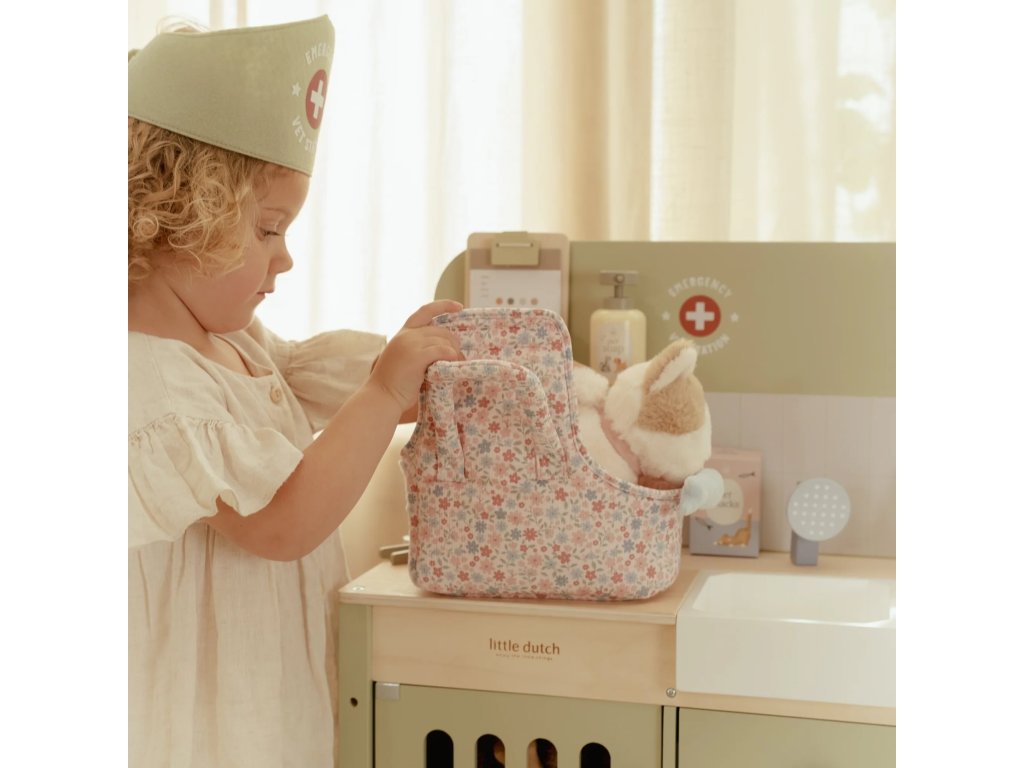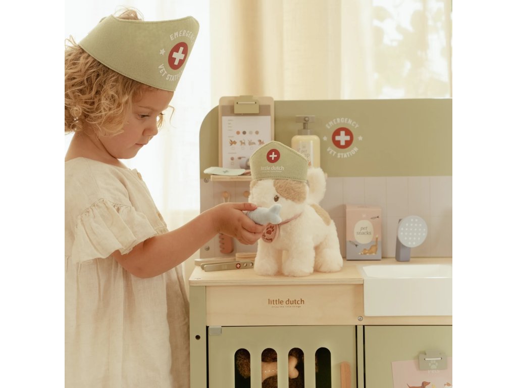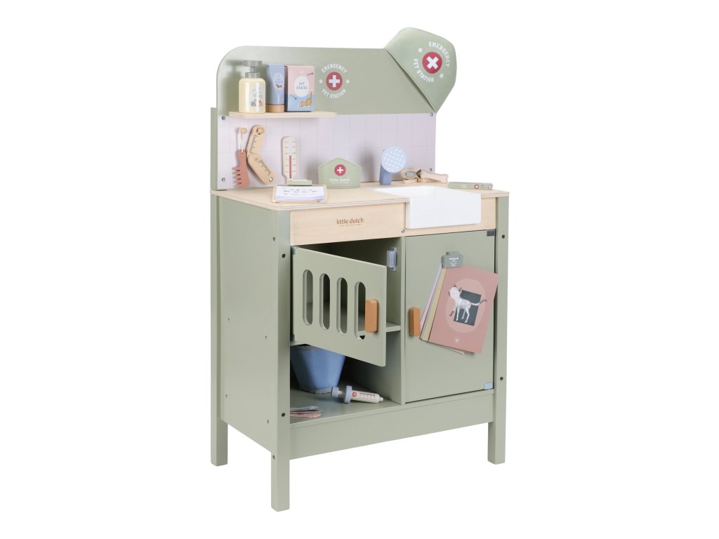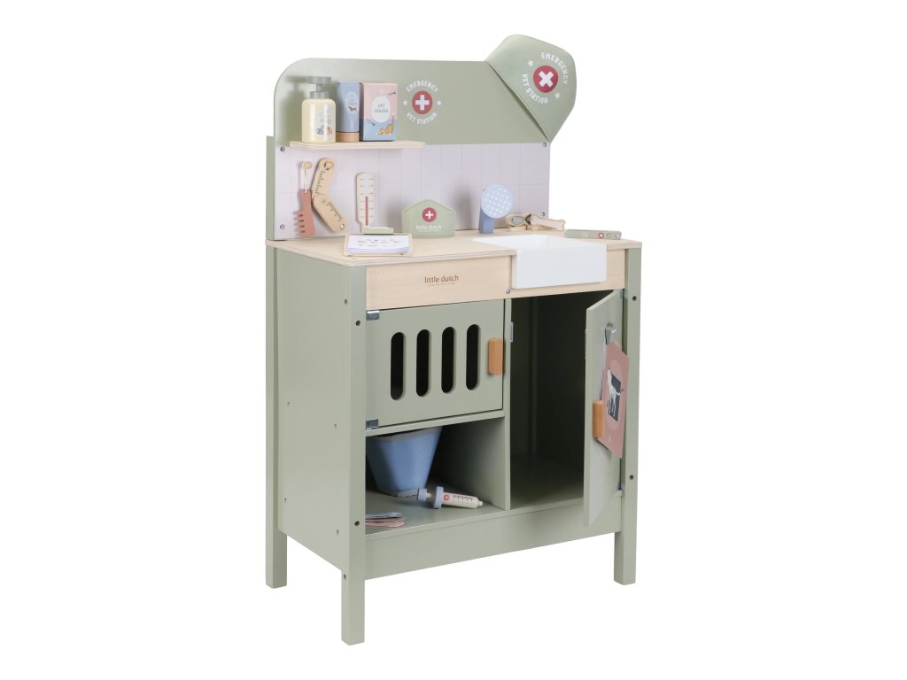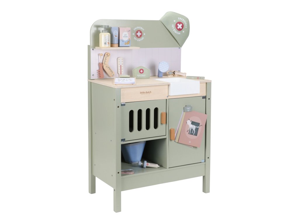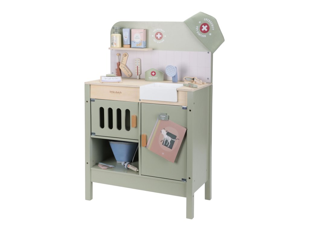 Drevená veterinárna ordinácia Little Dutch je skvelým darčekom pre deti, ktoré milujú zvieratká a starostlivosť o ne. Vďaka realistickým doplnkom sa malí ošetrovatelia ľahko ponoria do sveta starostlivosti o chorých miláčikov. Pripravte sa na množstvo príbehov zo života plyšových zvieratiek a nekonečné hodiny zábavného hrania!
