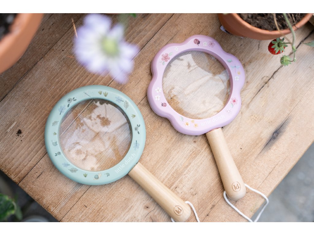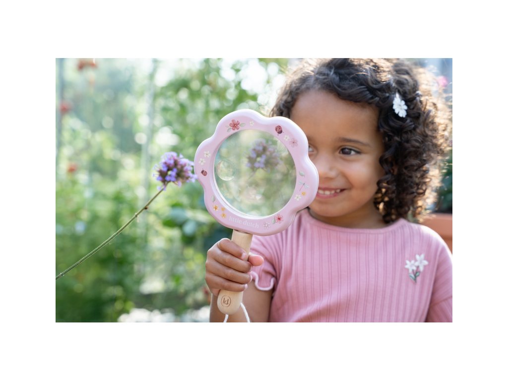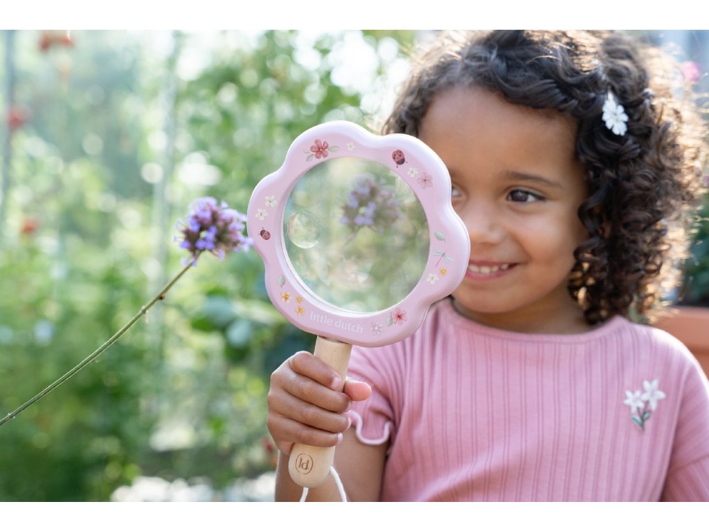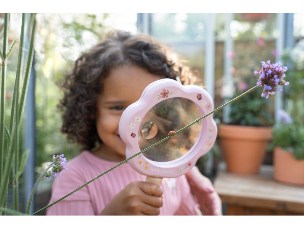 Lupa s krásnou potlačou je súčasťou dizajnovej kolekcie hračiek a doplnkov Little Dutch Fairy Garden, inšpirovanej životom na záhrade.