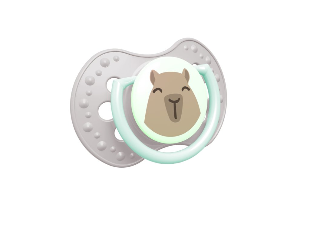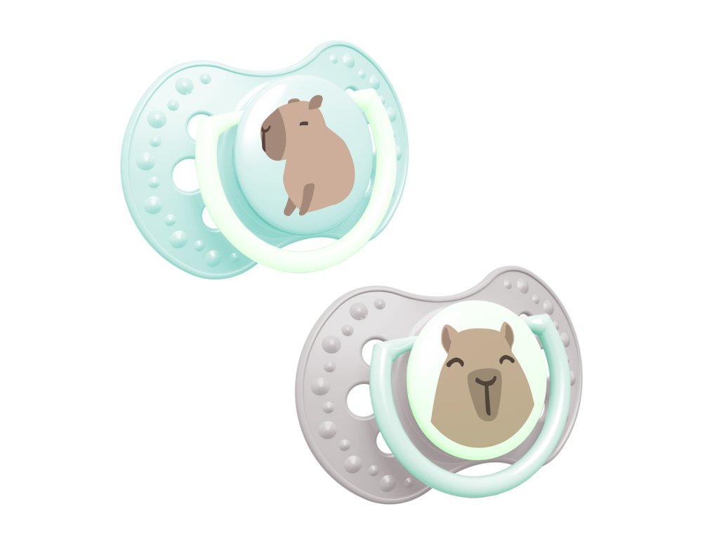 Úchytka pri jednom cumlíku a stred pri druhom cumlíku svieti v tme, čo uľahčuje jeho hľadanie v noci.