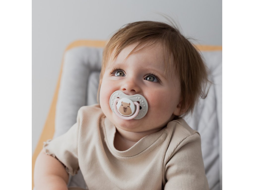 Dynamický cumlík LOVI z kolekcie CAPICHILL je bezpečný pre sací reflex a nenarúša vývoj reči a zhryzu*.