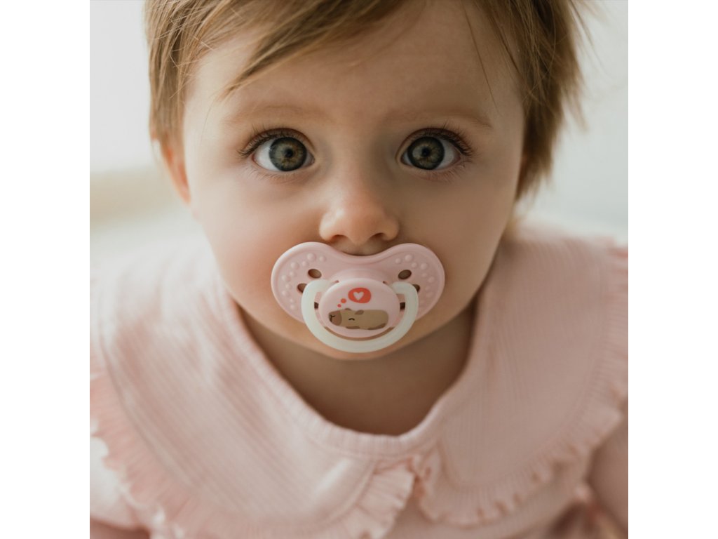 Dynamický cumlík LOVI z kolekcie CAPICHILL je bezpečný pre sací reflex a nenarúša vývoj reči a zhryzu*.
