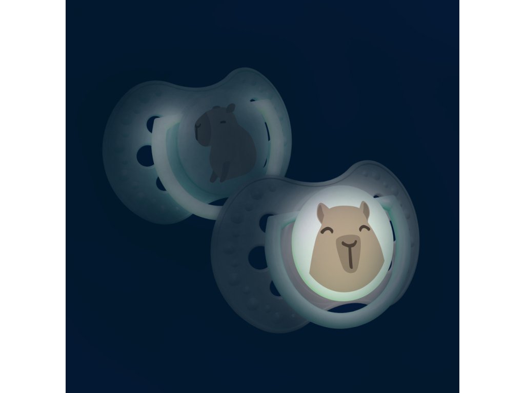 Úchytka pri jednom cumlíku a stred pri druhom cumlíku svieti v tme, čo uľahčuje jeho hľadanie v noci.