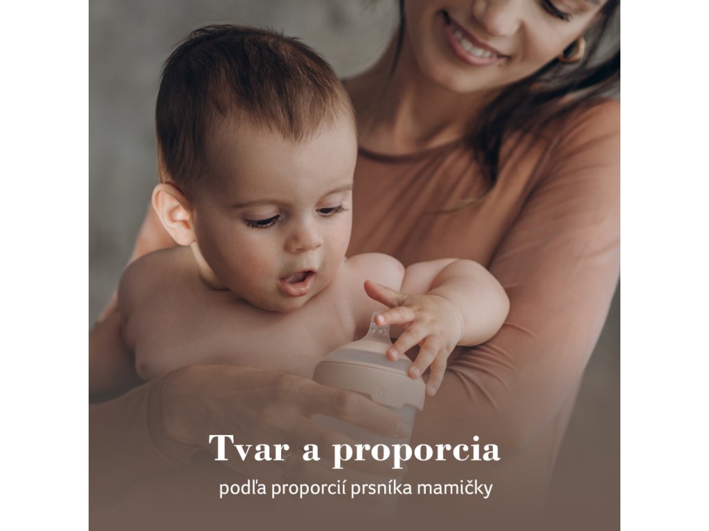 • Tvar a proporcie podľa vzoru mamičkiných prsníkov zaisťujú, aby ústa dieťaťa boli umiestnené v správnom uhle.