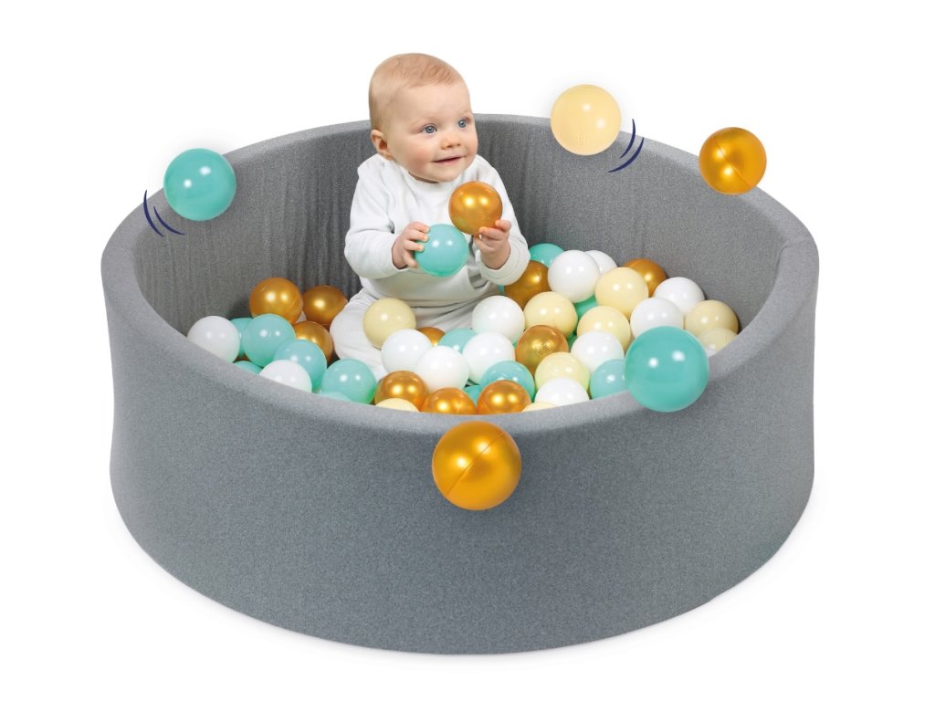 Ohrádka je naplnená jemnými plastovými loptičkami v pastelových farbách, ktoré stimulujú detské zmysly a podporujú rozvoj motoriky a koordinácie