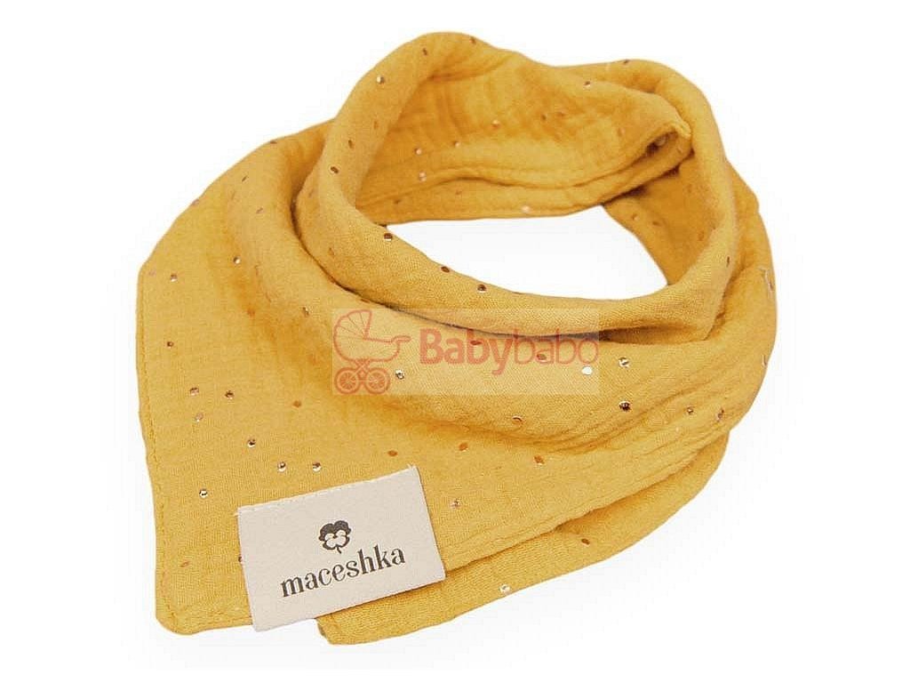 Slintáčik Maceshka je vyrobený z bavlneného mušelínu. Jedná sa o jednu z najjednoduchších, najjemnejších a najčistejších foriem tkaniny na svete. Vďaka otvorenej väzbe vlákien je materiál veľmi ľahký a vzdušný a priedušný. Zároveň je veľmi príjemný na pokožke. Cez svoju jemnosť a ľahkosť sa jedná o veľmi odolný a pevný materiál. Bez problémov môžete mušelín prať, postupom času sa bude stávať ešte jemnejším. Každá vrstva bavlneného mušelínu je vlastne spojenie dvoch vrstiev tkanín y neviditeľnými stehy. V nech pridajú Podbradníky sa teda jedná o 4 vrstvy tkaniny. Slintáček sa zapína na patentky a možno zapnúť na menšiu alebo väčšiu veľkosť. Vhodné pre deti i dospelých (max obvod cca 50cm) Oeko-Tex certifikát 100% bavlne ný mušelín Možno prať v práčke