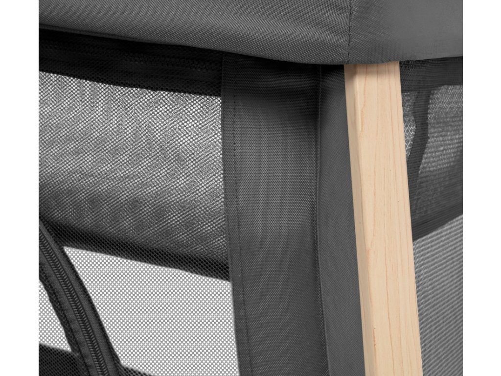 Postieľka ponúka dve výškové polohy: Pre deti od narodenia do 9 kg je určená poloha s vyvýšeným dnom, ktorá vám uľahčí manipuláciu s bábätkom. Pre deti, ktoré už dokážu samostatne sedieť, je určená poloha so zníženým dnom a vysokými bočnicami. V zníženej polohe má matrac dĺžku 100 cm na použitie až do 3 rokov. Bočnice chránia dieťa pred vypadnutím z postieľky a zároveň vďaka sieťovanému materiálu nebránia dieťaťu výhľadu z postieľky a vám umožní ľahkú kontrolu spiaceho dieťaťa. Postieľka je vybavená kvalitným penovým matracom. Sieťované steny zaisťujú vetranie postieľky. Veľký otvor so zapínaním na zips umožňuje väčším deťom samostatné vyliezanie z postieľky.