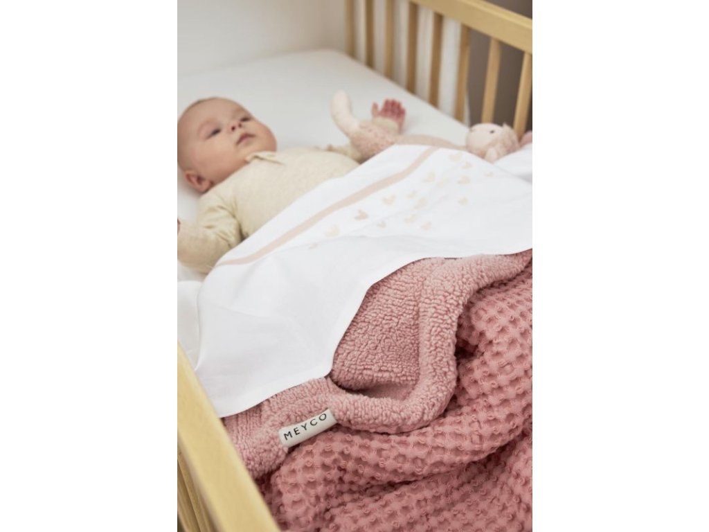 Meyco Deka do postýlky Waffle Teddy fleece - Old pink