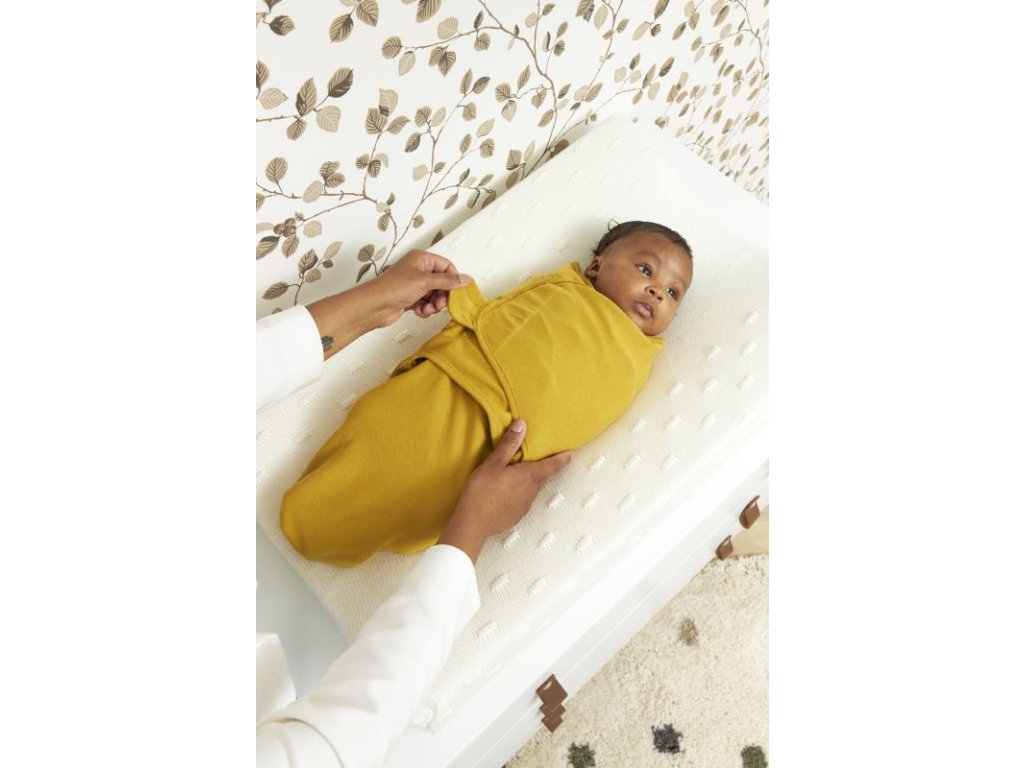 Ujistěte se, že jsou chlopně pevně uchyceny, ale neomezujte své dítě úplně. Nejlepší je mít ruce natažené podél těla a miminko při zavinování vždy pokládat na záda.
